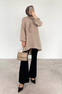 Modalamelif Yaka Bağlamalı Ayrobin Tunik Camel