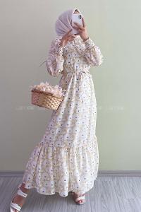 Krem Rengi Elbise