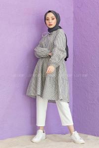 Modalamelif Yaka Bağlamalı Çizgili Tunik Gri