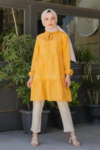 Lamelif Manşeti Biyeli Tunik Sarı