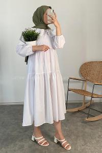Modalamelif Yaka Dantelli Elbise Beyaz