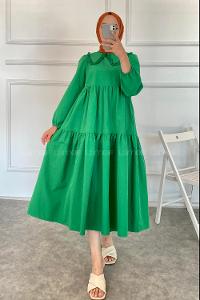 Modalamelif Yaka Dantelli Elbise Yeşil