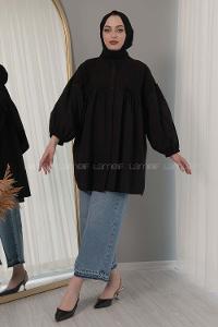 Lamelif Manşeti Biyeli Tunik Acı Kahve