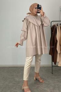 Modalamelif Yaka Fırfırlı Güpürlü Tunik Taş