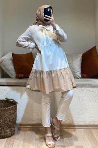 Modalamelif Yaka Kravat Garnili Tunik Sütlü Kahve