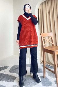 Modalamelif Yaka Renk Garnili Süveter Kiremit