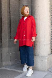 Modalamelif Yaka Yırtıklı Ceket Kırmızı