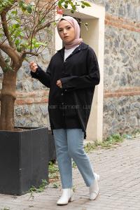 Lamelif Dekoratif Cep Detaylı Tesettür Ceket Lacivert