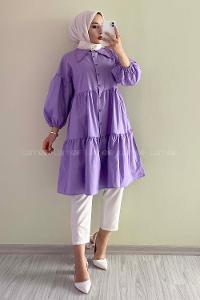 Modalamelif Yakası Dantel Detaylı Önü Düğmeli Poplin Tunik Lila