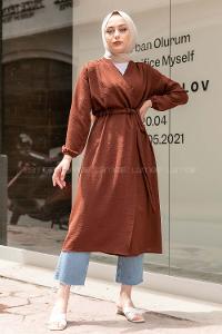 Modalamelif Yan Belden Bağlamalı  Trenç Acı Kahve