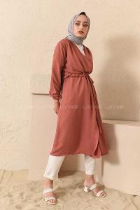 Lamelif Kruvaze Kısa Tesettür Trençkot Acı Kahve