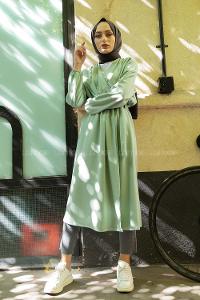 Lamelif Kol Kemerli Trençkot Çağla Yeşili