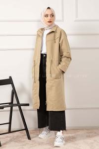 Lamelif Omuz Apoletli Trençkot Taş Rengi