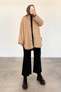 Vatka Detaylı Tesettür Gömlek Bej