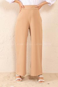 Lamelif Cırt Kapamalı Krep Pantolon Sütlü Kahve