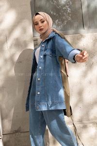 Lamelif Fleto Cepli Kot Ceket Kot Mavisi