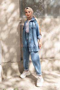 Lamelif Fleto Cepli Kot Ceket Kot Mavisi