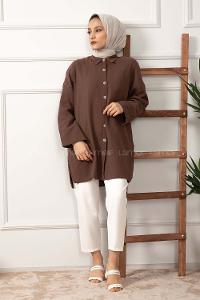 Modalamelif Yan Yırtmaçlı Gömlek Acı Kahve