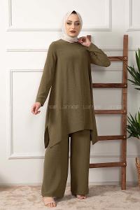 Modalamelif Yan Yırtmaçlı İkili Takım Haki