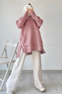 Modalamelif Yanı Düğme Detaylı Oversize Sweatshirt Pudra