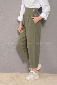 Modalamelif Yanı Fermuarlı Kot Pantolon Haki