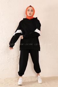 Lamelif Bisiklet Yaka Ribanalı İkili Eşofman Tesettür Takım Siyah