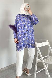 Lamelif Oversize Gömlek Saks Mavisi