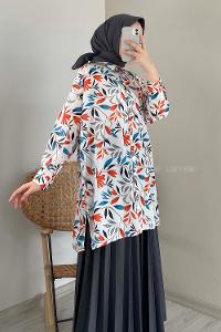 Modalamelif Yaprak Desen Dijital Baskı Gömlek Ekru Kiremit