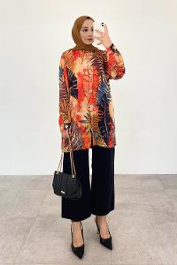 Modalamelif Yaprak Desen Dijital Baskı Gömlek Hardal Sarısı