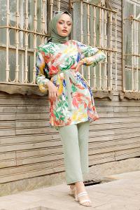 Lamelif Balance Armalı Çımalı İkili Tesettür Takım Haki
