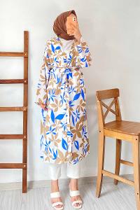 Modalamelif Yaprak Desenli Kuşak Bağlamalı Kimono Camel