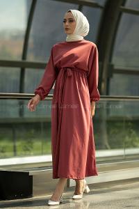 Lamelif Elica Tesettür Elbise Taş Rengi