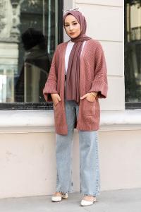 Modalamelif Yara_sa Kol Katlamalı Triko Hırka Gül Rengi