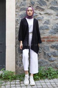 Lamelif Bisiklet Yaka Kısa Hırka Siyah