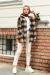 Modalamelif Yarasa Kol Oduncu Gömlek Kahve Bej