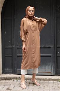 lamelif Piliseli Uzun Gömlek Acı Kahve