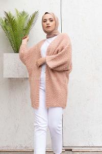 Modalamelif Yarasa Kol Triko Hırka Pudra