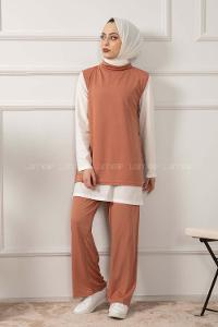 Lamelif Balance Armalı Çımalı İkili Tesettür Takım Camel