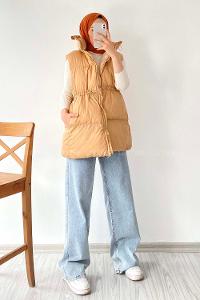 Lamelif Önü Çıtçıt Düğmeli Yelek Camel