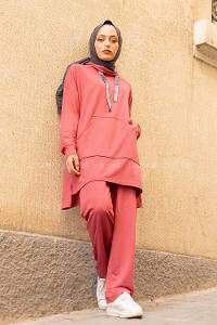 Lamelif Kapüşonlu İkili Takım Bordo