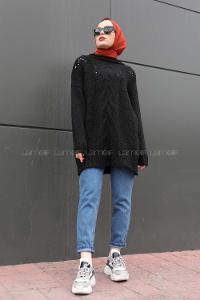 Lamelif Dilvin Balıkçı Yaka Oversize Kazak-Siyah