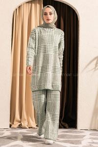 Modalamelif Yarım Balıkçı Yaka Kazayağı Desen Takım Çağla