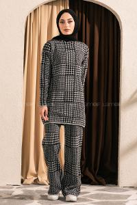 Modalamelif Yarım Balıkçı Yaka Kazayağı Desen Takım Gri