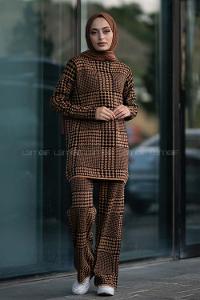 Modalamelif Yarım Balıkçı Yaka Kazayağı Desen Takım Sütlü Kahve