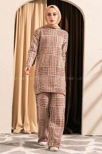 Modalamelif Yarım Balıkçı Yaka Kazayağı Desen Takım Taba