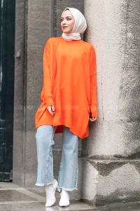 Modalamelif Yarım Balıkçı Yaka Oversize Detaylı Panço Oranj