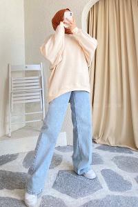 Modalamelif Yarım Balıkçı Yaka Salaş Sweat Krem