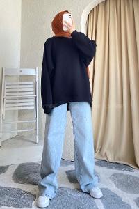 Modalamelif Yarım Balıkçı Yaka Salaş Sweat Siyah