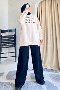 Modalamelif Yarım Balıkçı Yaka Yazı Baskılı Salaş Sweat Krem