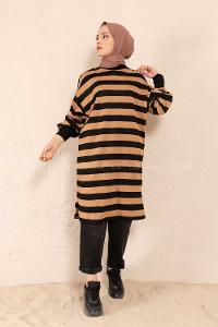 Lamelif Gizli Düğme Detaylı Tesettür Tunik Karamel